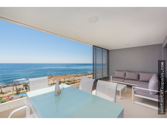 The exclusive complex Panorama Mar is located in Punta Prima, Torrevieja. The residencial consists of spacious community areas, three community pool (one infinity, one heated and one for kids), playground area for kids, underground parking, storage room and 24 hours private security.