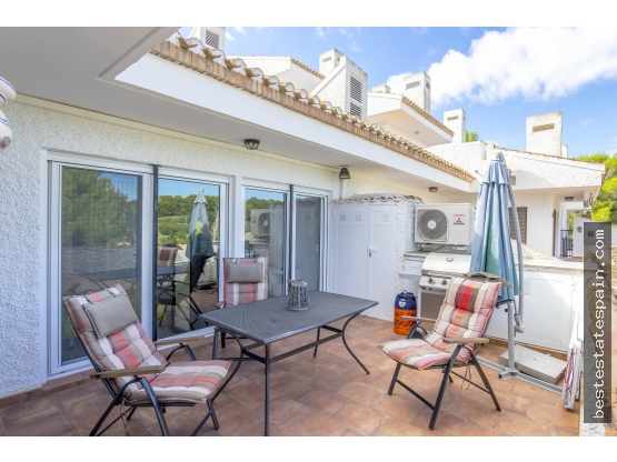 The property features a large dining/living area with chimney. The property also benefits from a large terrace with views to the golf course, outdoor parking and storage room.