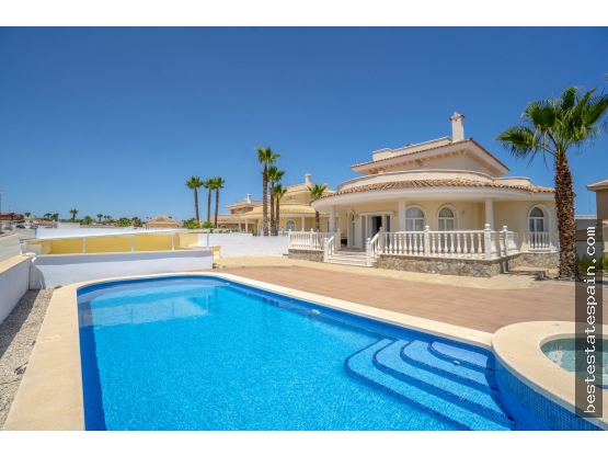 Fantastisk fristående villa i medelhavsstil med fyra sovrum och tre badrum i Ciudad Quesada. Fastigheten har en rymlig matsal och vardagsrum och ett separat kök, två sovrum och ett badrum på bottenvåningen. Ytterligare två sovrum och två badrum med eget badrum ligger på första våningen. Fastigheten har också en rymlig terrass, stor privat pool, takterrass och garage för två bilar. Tomten är på 709 kvm