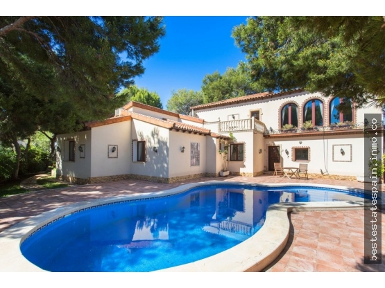 Built on a large plot of 900 m2, the house has four spacious bedrooms and three bathrooms. Large independent kitchen with access to the garden and barbecue, living room with marble fireplace, terrace overlooking the private pool. In addition the house is equipped with sauna with shower, storage, pantry, gallery, storage room and a garage. Oil central heating in all rooms. Underfloor heating. Air conditioning installed in all rooms.